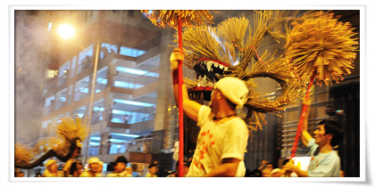 月圓人團圓的香港中秋節,每年會於銅鑼灣維多利亞公園舉辦大型中秋綵燈晚會。特別的是,在中秋節前後,香港銅鑼灣大坑還會舉辦百人舞火龍的活動,並繞境香港大街小巷,居民拔下火龍上的線香,祈求平安。這是過去100年來,用來解瘟疫的民俗,漸漸變成香港的特色風情。