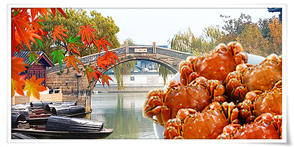 江南9-10月盛產的陽澄湖大閘蟹,風靡台灣饕客。大閘蟹有「九雌十雄」之說,陰曆9月雌蟹抱卵,蟹黃肥美,陰曆10月雄蟹脂膏豐腴,蟹肉嫩白。大體來說,秋天吃肥美的大閘蟹,對台灣人來說可是抵擋不住的美味。能一邊欣賞江南秀麗景色,一邊品嘗秋蟹,是最愜意不過的事了。