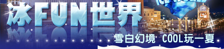 8,000塊冰塊共同打造奇幻國度,澳門威尼斯人邀您進入這15℃的冰雕奇境!黑龍江冰雪藝術發展有限公司與澳門威尼斯人渡假村聯手打造的「冰FUN世界」,於2011年5月14日在澳門威尼斯人渡假村盛大開展,準備讓你COOL玩一夏!哈爾濱49位冰雕藝術家將在這晶瑩剔透的冰宮,打造屬於你的奇幻旅程,從澳門世界遺跡大三巴牌坊出發,走訪中國北京天壇、印度泰姬陵、法國艾菲爾鐵塔、羅馬鬥獸場等不思議瑰麗勝景,威尼斯人冰FUN世界冰封炎炎夏季帶你環遊全世界! |