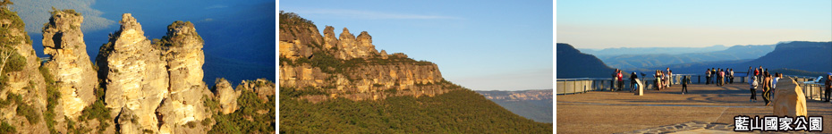 西元兩千年被聯合國教科文組織列入世界自然遺產之列的藍山國家公園,裡富含著大面積的原始叢林和亞熱帶雨林的林像,其中以尤加利樹最富盛名,尤加利樹乃為澳洲的國樹,種類繁多約有500多種,是澳洲珍貴的有袋類生物無尾熊的最佳食品;在森林步道中浸沐在大自然的芬多精裡,空氣中彌漫著尤加利樹的清香,給人一種心曠神怡的感受。藍山國家公園的範圍從海拔100公尺到1300公尺之間的高原丘陵,極其特殊的地理和氣候環境,蘊含了許多原生種類的動植物,據記載考證,大約一萬多年前,藍山國家公園的地質因為火山運動而變化活躍,後來又經年累月的風雨侵蝕,使我們今天得以觀賞到奇山異石的景象。藍山國家公園裡有著超過400多種動植物,令人讚嘆澳洲自然界的生態進化史中奧妙的軌跡。 |