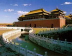 | | 【故宮紫禁城】 位於北京市中心、天安門廣場北 1公里 、景山南門對面,東西寬 753米 ,南北長 961米 ,面積達72萬平方米,是世界上規模最大的宮殿建築群。故宮週邊是一條寬 52米 、深 6米 的護城河;河內是周長 3公里 、高近 10米 的城牆,城牆四面都有門,南有午門,北有神武門,東有東華門,西有西華門;城牆四角還聳立著4座角樓,造型別緻,玲瓏剔透。1987年列入《世界遺產名錄》。 |  |