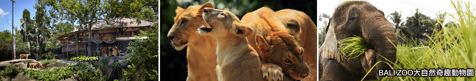 想感受百分百的叢林歷險,就從BALI ZOO開始吧!在充滿原始風味的「獅子餐廳」裡,與生猛活潑的獅子們一同用餐,欣賞萬獸之王的颯爽英姿,來場近距離親密接觸!園區內除了有精采的「飛禽空中餵食秀」,更有特別的「Treewalk」森林之旅和「村莊深度巡遊」豐富活動,帶給您無與倫比的自然體驗!
