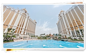 「澳門銀河」引以為傲、充滿休閒度假風情的平台《天浪淘園》,全世界最大佔地52,000平方米的空中衝浪池,使其成為澳門首家獨一無二的綜合渡假城,讓每位賓客安然享受熱帶風情的旅遊體驗。 賓客既可在平台上的空中衝浪池暢泳一番,更可以跟小孩們砌個小沙堆、或且輕輕鬆松的,在長達150米沙灘岸邊的沙灘椅上享受日光浴。 | |
