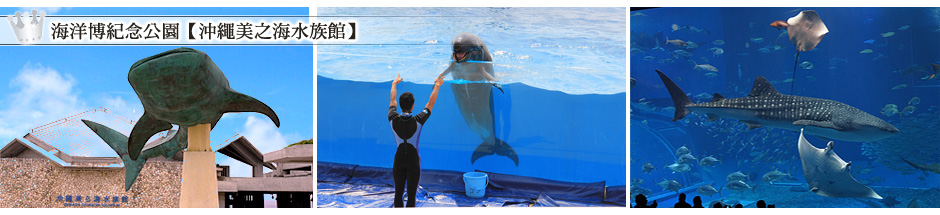 【國營沖繩紀念公園-海豚表演-沖縄美ら海水族館】 沖繩美之海水族館於2002年11月1日全新開幕以”與琉球海洋有約”為主題,有3個主題水族箱:珊瑚礁之旅、黑潮之旅及深海之旅可以讓你全覽沖繩沿海的水中生物,其中最棒的世界第一大水族箱一黑潮之旅;可以看到細長不超過手掌的條紋蝦魚和毛煙管魚、可長大至14公尺長的7公尺鯨鯊、世界最大的軟骨魚-鬼蝠魟、有著黑人厚唇的曲紋唇魚,也可以看到像貌醜惡的石頭魚、章魚、蝦子等等350種奇形怪狀、大大小小的海中生物,令人嘖嘖稱奇,這種滋味就等你來試試囉!另有 (海牛館、海龜館)可參觀,並欣賞(海豚劇場),可愛聰明富靈性的海豚帶給遊客智慧型表演並可拍照留念。 【亞熱帶水果園Fruits Land-鳳梨園+蝴蝶園+飛鳥園】 穿過七彩繽紛的大門,亞熱帶就呈現眼前!可體驗南島自然景色的園內分為三大主題區。『熱帶果園區』充滿南國水果及日本本島所沒有的特殊植物、熱帶水果和花卉。『蝴蝶園區』可了解蝴蝶成長的過程及可自在的享受與蝴蝶在一起的樂趣,數量眾多的日本最大型的「大胡麻斑蝶」不時在您的身旁飛來與您為伍,同時也可與牠們合影。『飛鳥園區』此處聚集著各式各樣品種的色彩艷麗鸚鵡,也可將鸚鵡們放在頭、肩膀或手臂上與牠們合影。還可在園中賣場可品嚐各式小點心。