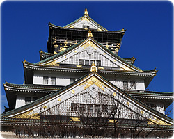 與名古屋城、熊本城齊名的三大名城之一,為日本名將豐臣秀吉所建造,其雄偉的石牆砌造佔地約106.7公頃,分為本丸、二之丸和城廊之外的三之丸,四周以護城河圍繞。園內種植許多樹木,以染井吉野櫻為主,亦有上千棵梅樹來點綴,被樹林環繞的大阪城,其四季呈現各種美景令遊客沉醉。