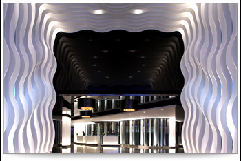 酒店外觀改成黑色的外牆,親切的飯店服務人員就站在門口,為您推開大門,走進去映入眼前的是黑白分明、非常迷幻的走道,彷彿進入了時光隧道。 |