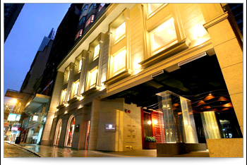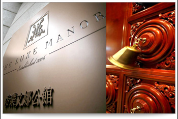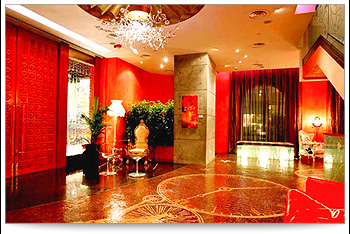 帝樂文娜以公館自居,客房設計得像是住宅,就是想表現歐洲住宅的建築風格。從側邊的大門就可見其用心,木門上掛滿印度廟宇的小鼓鐘,開門時叮叮噹噹的頗具民俗色彩,推開這重達900公斤的酒紅色大門一點也不費力,可見裡面有特殊機關。大門後的世界,首先印入眼簾的是造型獨特的燈飾、紫色的地板搭配紅色的牆壁及黑色的沙發,色彩運用華麗中帶著神秘;馬賽克壁面、地板上大量的鏡面營造出紙醉金迷的奢華,帶來一種超脫現實的夢幻感,尤其是地上的馬賽克拼貼,羅盤、時鐘等,更點出時空轉換的概念。帝樂文娜強調兩大特色,一是超現實主義的設計,一是遍布酒店各角落的高科技設施,置身其中彷彿時空錯置,不知道是過去還是未來的奇妙感受。大廳所用的家具都是都別訂製的,有透明塑料椅、貝殼沙發,一張以老夫子漫畫特別授權做的單椅呈現了香港的漫畫文化。 |