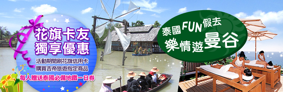 活動期間刷花旗信用卡購買吉帝旅遊指定商品,每人加贈泰國必備地鐵一日券一張。
