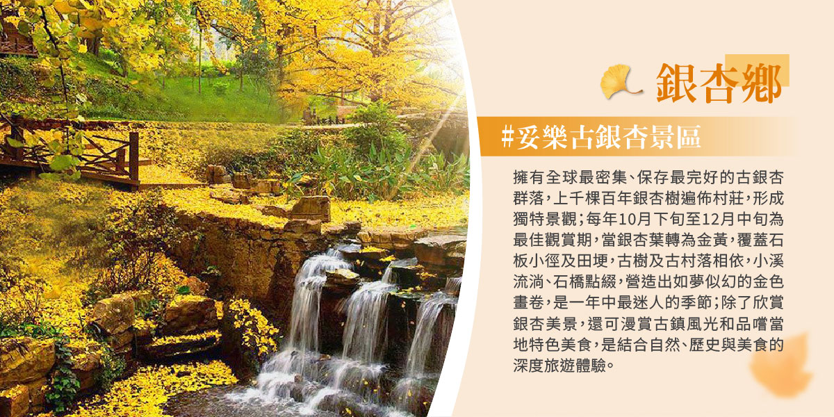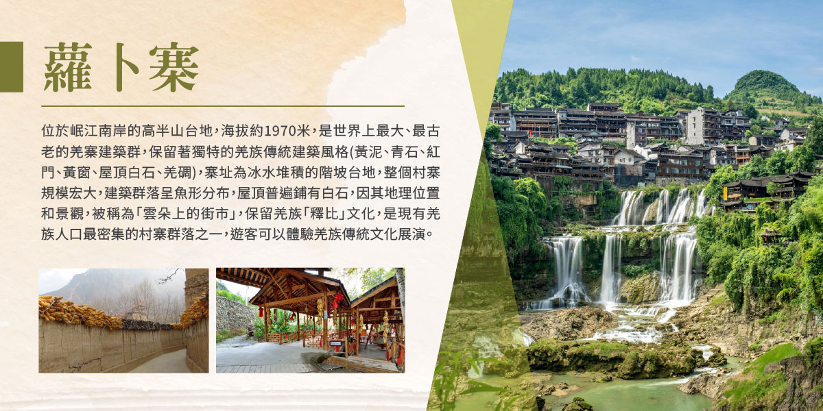 飯店→全球最密集及保存最完好的古銀杏群落【妥樂古銀杏景區】→世界上最大最古老的羌寨建築群【蘿卜寨】→飯店(茂縣)